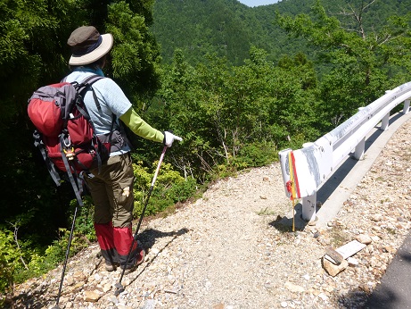 ↓車道にでるけど登山道に戻るときはちゃんと目印があるからね。