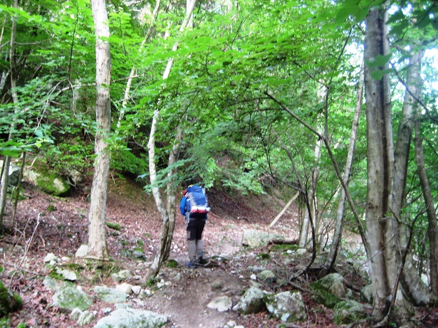 上の黒い矢印どおり最初の分岐まで戻ることにした。