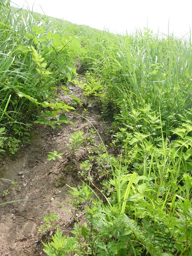 ↓上まで行きたい人は本来、写真中央の斜めの線(道)を登る。