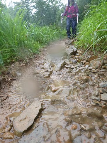 私はこの沢沿いの道が苦手。