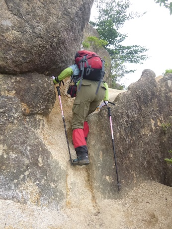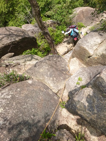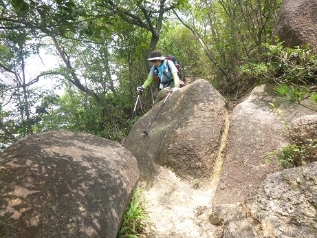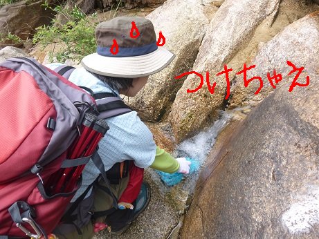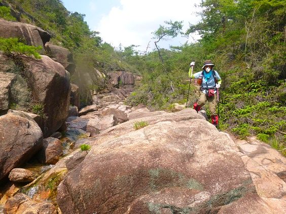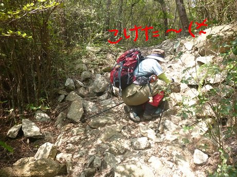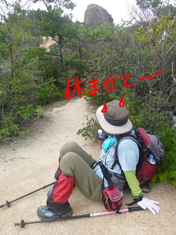 時々岩の上でしゃがみこむも