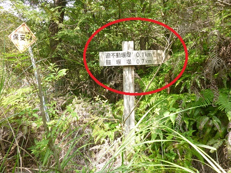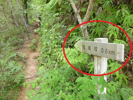 ↓堰堤(えんてい)までの標識