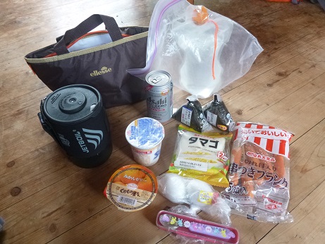5合目小屋の中でオヒルメシ。