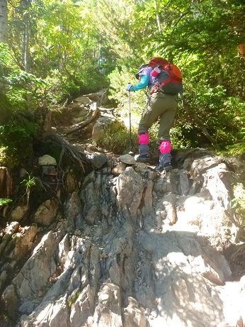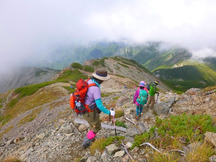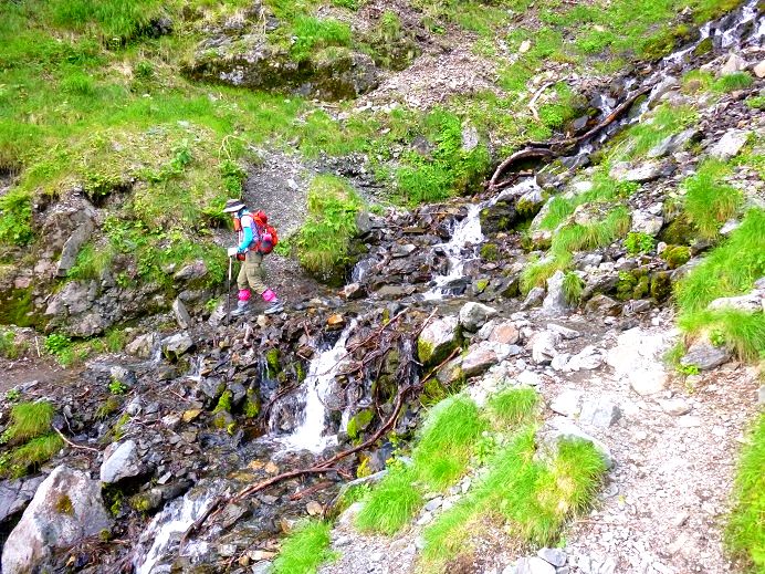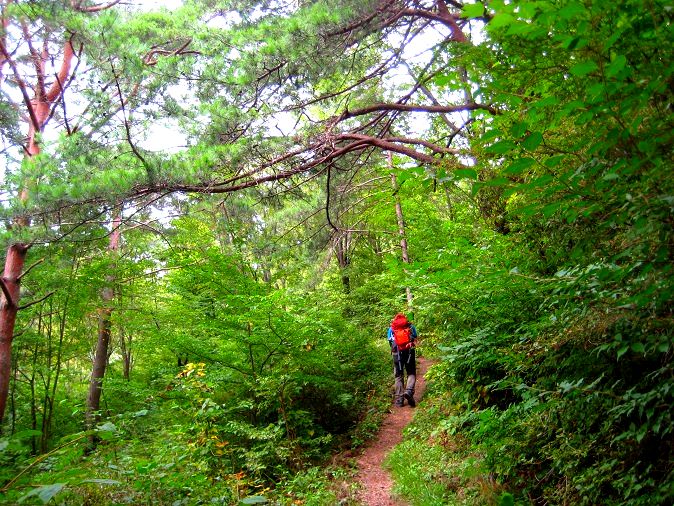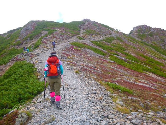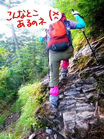 ほぼ一緒に歩き始めたテン泊装備のご婦人方に