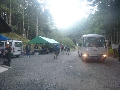 家から約4時間かけて4時過ぎに駐車場に到着。