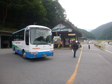 このバスは狭く、ザックはひざの上、助手席は最悪、