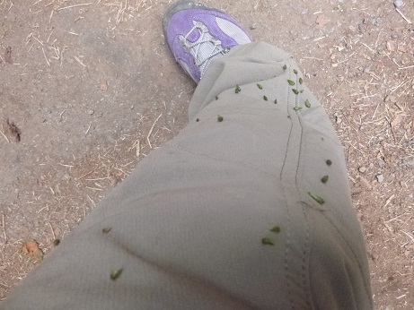 服が草のみだらけ、って