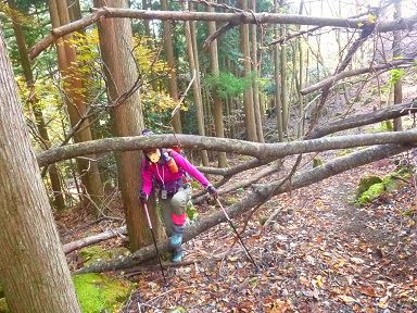(ここらあたりはしっかり踏み固められた登山道がないの)