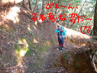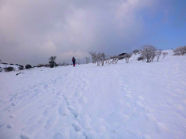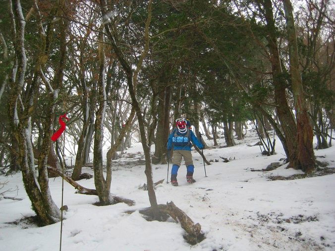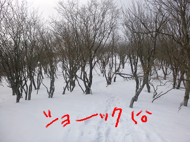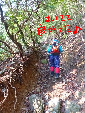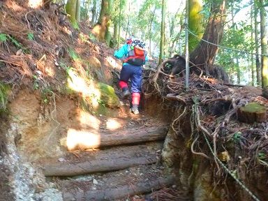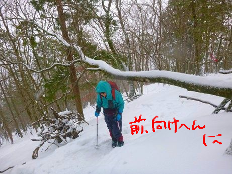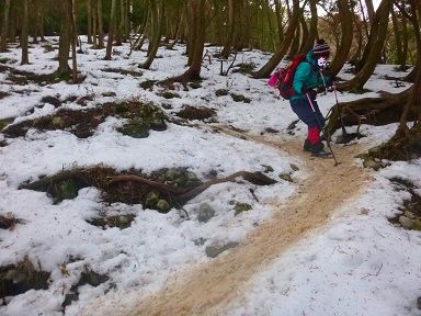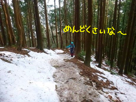 たまらず最後は踏み跡のない(踏み固められていない)斜面を強引に登ってしまった。