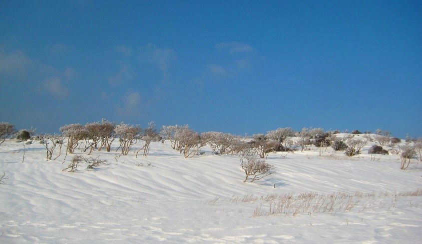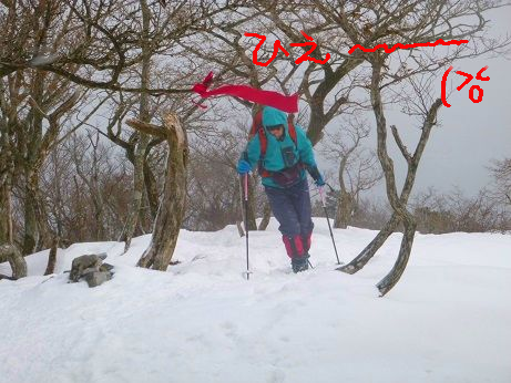 登りで吹雪かれた全く同じエリアでくだりも吹雪かれた。