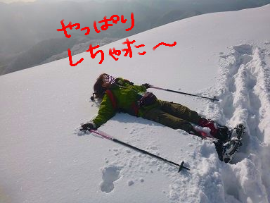 私は雪の斜面に何度もぽれさんの名前かいといたけど