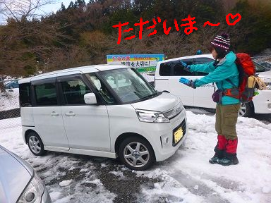 駐車場にさしかかる最後の坂の積雪状態が心配だったけど
