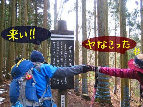 ↓”首洗いの池”への分岐