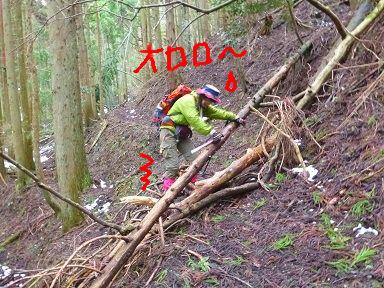 踏み跡がど~にも怪しくなる。